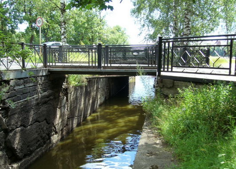 Небольшой Пешеходный мост переброшен для движения пешеходов через Заводской канал города Сестрорецка.